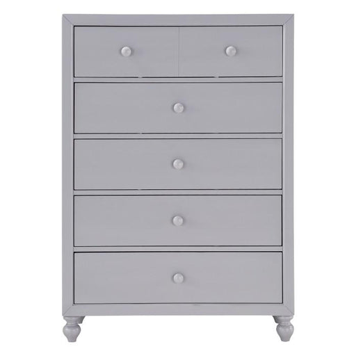 Homelegance (Homerica East)Wellsummer Collection by Homelegance Furniture Gray finish Made of man-made wood 5 Drawers Gray tone wood knobs Dovetailed drawers Metal on metal ...