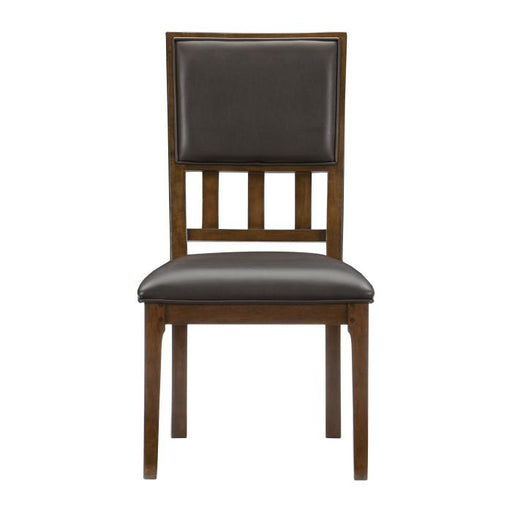 Homelegance (Homerica East)Frazier Park by Homelegance Dark cherry finish Wood frame Vinyl upholstered seat and back Assembly required Sold in set of 2