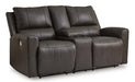 Experience modern luxury with this power reclining loveseat with console. The soft-to-the-touch leather and faux leather upholstery brings ultimate relaxation at a price you can afford. With sleek arms and a plush, pillowy back, the loveseat merges comfort and support with a high-style design.