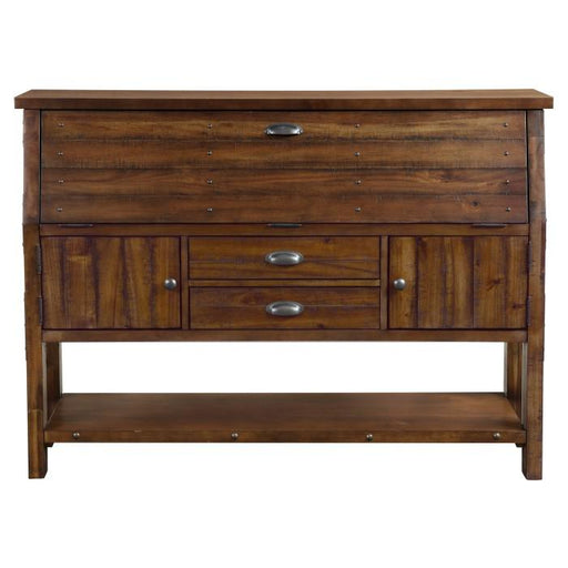 Homelegance (Homerica East)Holverson Collection by Homelegance Rustic Brown finish Made of Acacia veneer and wodd 1 upper cabinet with fold-down door 2 dovetail drawers with...