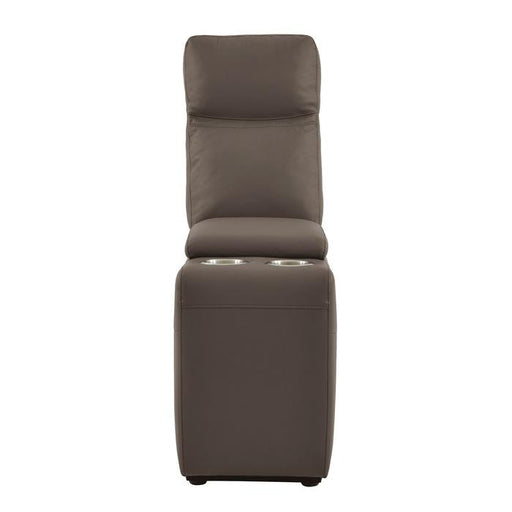 Homelegance (Homerica East)Laertes Collection by Homelegance Furniture Taupe Gray top grain leather Contrasting with a darker tone fabric Power reclining mechanism