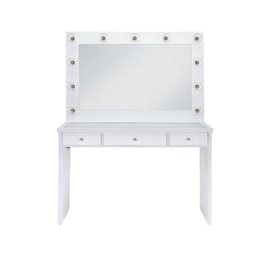 - Light wood finish beautifully complemented with a sleek, white marble top
