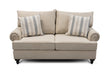 Create a welcoming atmosphere in your home with England's Rosalie collection. With its generous proportions, casual rolled arm, beautiful turned leg, optional antique brass nailhead trim, and loose pillow back, you'll probably want to sit and relax for a bit! Our Rosalie series features a sofa, loveseat, chair, ottoman, and sectional. Make this style go cottage or family room with your choice of over 400 fabrics!
