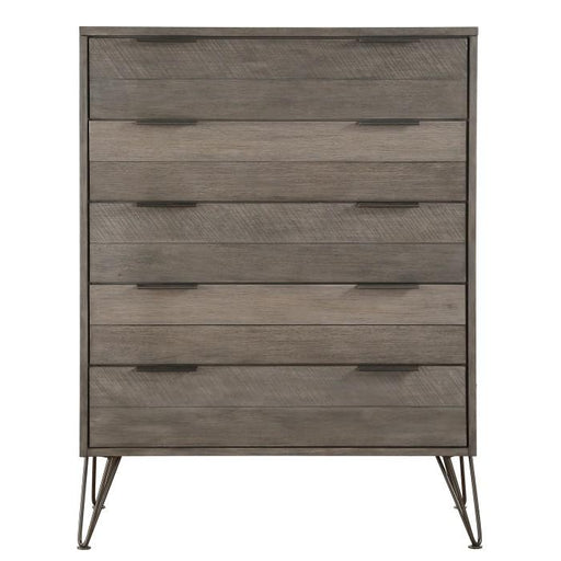 Homelegance (Homerica East)Mayville Collection by Homelegance Furniture Gray finish 5 Drawers Antiqued metal bale hardware Distinct framing
