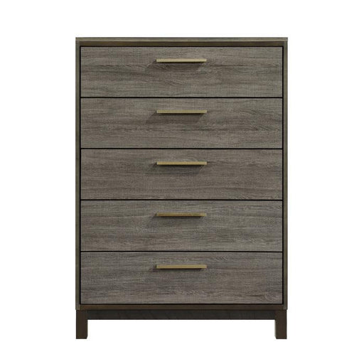 Homelegance (Homerica East)Vestavia Collection by Homelegance Furniture Gray finish 5 Drawers Faux wood Horizontal brushed nickel hardware