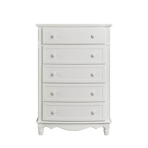 Homelegance (Homerica East)Clementine Collection by Homelegance White finish 5 Drawers Made of manmade wood and wood Dovetail drawers Ball bearing glides White tone knobs As...