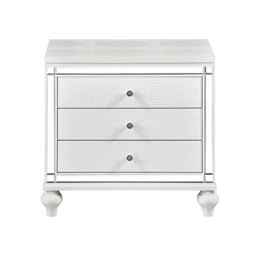 Homelegance (Homerica East)Alonzo Collection by Homelegance Furniture White finish Embossed alligator board 3 Drawers Inlay mirrors Turned feet