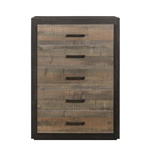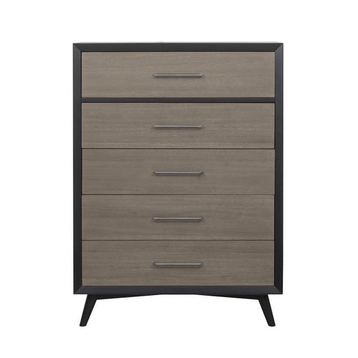 Homelegance (Homerica East)Raku Collection by Homelegance Furniture Gray finish Crafted from wood veneer 5 Drawers Dovetailed drawer Black accent Ball bearing side glides