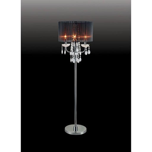 FOA EastJada Black Floor Lamp, 16"DIA X 62 1/2"H, 16lbs. A stylish black shade covers a cascading set of imported crystal droplets surrounding a metal base...
