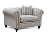 Our Rondell collection is our interpretation of the iconic English Chesterfield. This classic style features a beautifully tufted back and inside arm, simple front rail with button accents, a large rolled shelter arm accented with petite antique bronze nailheads, and an intricate turned wooden leg. We offer a sofa, love, chair, and ottoman covered in your choice of fabric or leather.