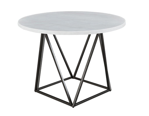 Steve SilverRamona by Steve Silver Deep bronze finish Constructed of a white marble top with iron metal base and iron chair legs Beautiful round white marble ...