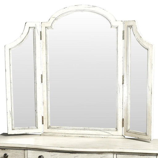 Steve SilverHighland Park by Steve Silver Cathedral White finish Beveled glass Tri-fold mirror Constructed of hardwood solids and veneers