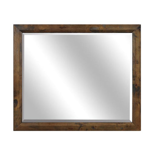 Modern yet hefty. This mirror makes an urban eclectic statement. Seasoned raw wood look merges with the clean lined design we love today. Muted rus...