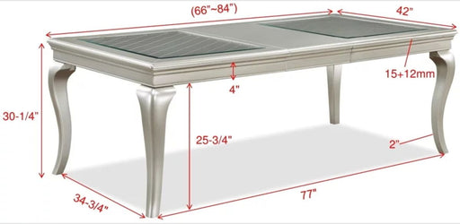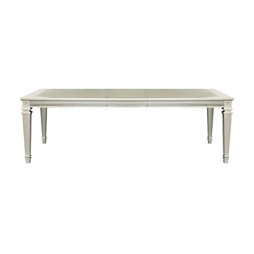 Bevelle Collection by Homelegance Furniture Silver finish Rectangular top Acrylic inset framing Includes 1 18" leaf 42.75W x 78D x 30H (closed) 4...