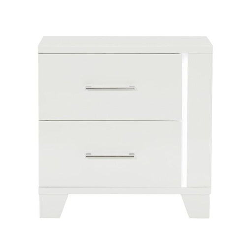 Homelegance (Homerica East)Kerren Collection by Homelegance White high gloss finish Crafted from manmade wood and wood Polished chrome tone bar pulls 2 drawers Dovetail d...