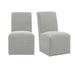 The Nero Side Chair Set is a great addition to your dining table. This set includes two dining side chairs. The transitional design of the chair, easily accessorizes with any standard dining table style. Both chairs are fully upholstered from top to bottom in a linen like fabric, which will give you and your guests comfort while at the table. While it appears these chairs sit flush on the floor, they actually have casters underneath the chair base for mobility. Therefore, you can arrange the chairs however you choose in your dining area. Be sure to check out the matching arm chair set as well! Features: • Includes: Two Side Chairs • Fully Upholstered • Standard Dining Height • Linen Like Fabric • Casters • Transitional Design • Foam Filled Seat and Back Cushions • Steel Spring Cushion • Plastic Chair glides on bottom of legs Dimensions: Depth: 26.0" x Width: 21.0" x Height: 36.0" Weight: 19.0 lbs.