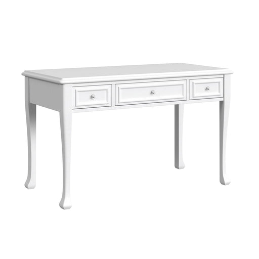 ElementsThe Jesse 3-Drawer Desk features a crisp white finish, delicate moldings, and crystal-like knobs for a touch of sparkle. The two small drawers for ...