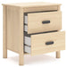 This nightstand brings on-trend style and a sense of serenity to the bedroom. Invitingly simple, its spacious drawers give you plenty of space to store your bedside essentials. Best of all, the natural wood finish and relaxed warmth complement any interior design.
