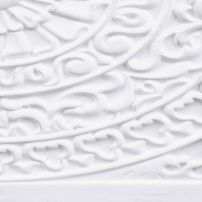 Put the last touches on a stylish space with the added storage and impeccable style of a modern accent cabinet. Featuring two decorative magnetic push-to-open doors, it's the perfect addition in any space, offering ample interior space with an adjustable shelf. The top creates space for decor or to highlight beautiful artwork hung above. The cabinet boasts a crisp white finish, bringing light, refined character to a pair of floral medallion doors. Curvy legs feature silver-toned caps, adding a hint of contrast and dimensionality in any room.