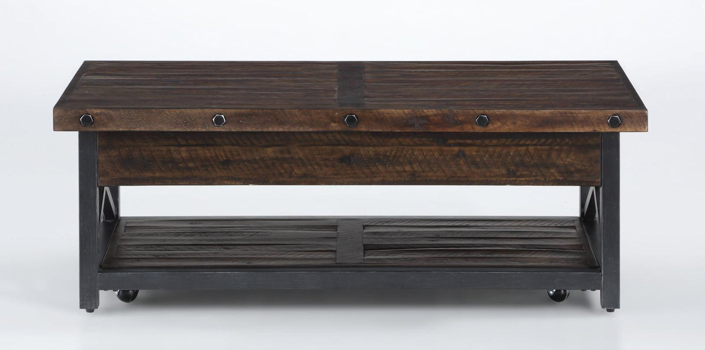 Flexsteel Carpenter Rectangular Lift-Top Cocktail Table with Casters in Rustic Brown
