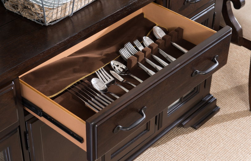 - Drawers are constructed with English dovetail joinery in the drawer fronts and backs