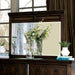 Create a cozy bedroom retreat with this transitional style collection that boasts a harvest brown finish. Lavish molded trim details exude elegance in this stunning matching mirror.