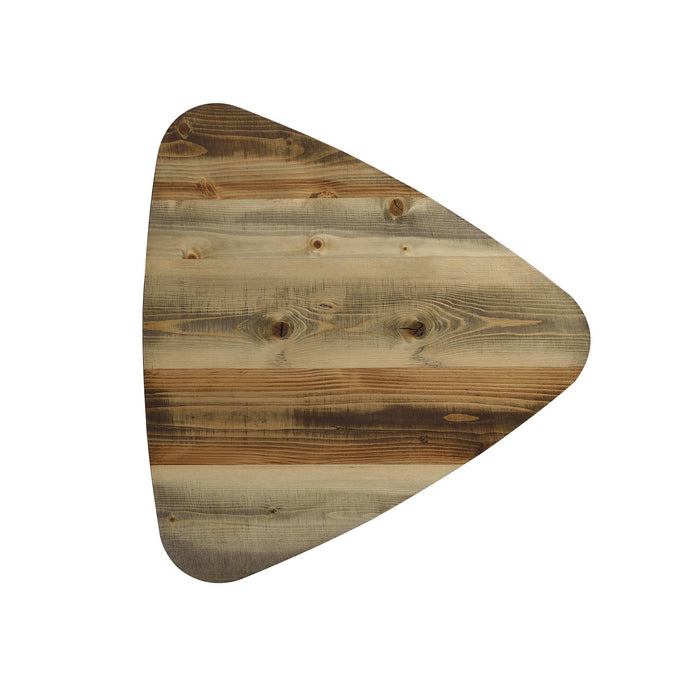 The Tribeca End Table will look fantastic in your home! This end table features a guitar-pick design, giving this end table an unexpected touch of flair. The table tops are finished in natural wood tones, in a slat style design. The sleek, black metal legs pair beautifully with the natural wood tones of the table top. Add this end table to your home today for a look that will be the envy of all your friends! - Guitar-Pick Design - Slat Design Table Tops - Natural Finish - Black, Metal Legs - Transitional Style - Tri-pod Base MDF Metal Pine 24 D x 23 W x 24 H, 27lbs. 1 Year Limited Manufacturer Warranty