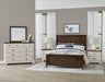Vaughan Bassett Lancaster County 2 Drawer Nightstand in Dove Grey 817-228. Two drawer nightstand features tops in a Dark Walnut finish and Dove Grey finish over the base. The custom-designed drawer hardware includes cup pulls and knobs with an antiqued bronze finish that complement the nightstand.